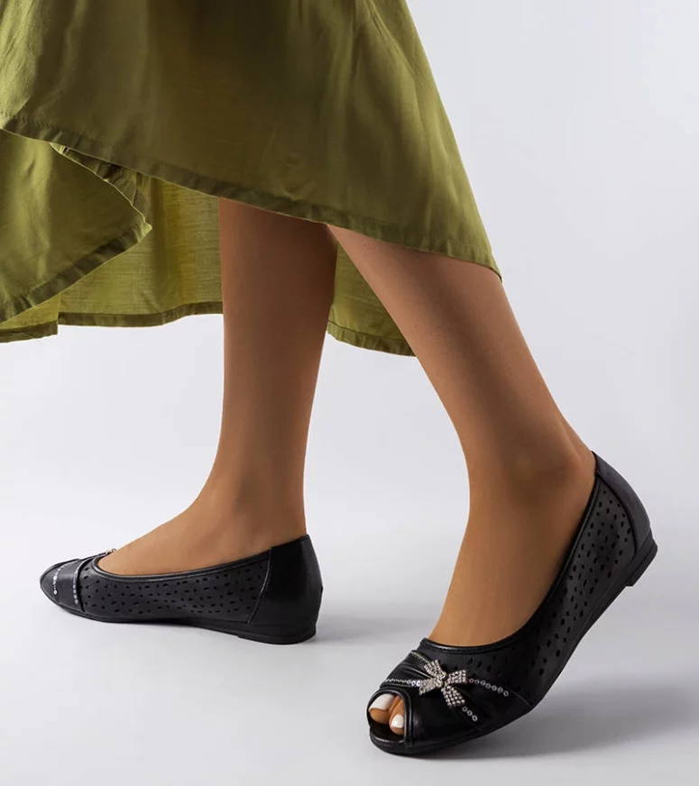 Ażurowe czarne balerinki z kokardką Simpsville