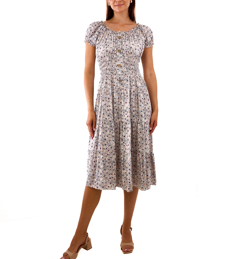 Sukienka Eloize to wyjątkowy i innowacyjny wybór dla każdej kobiety, która ceni sobie elegancję i styl. Ta beżowa sukienka midi ozdobiona jest pięknym wzorem kwiatowym, który dodaje jej uroku i delikatności. Dzięki swojemu chic designowi, ta sukienka doskonale sprawdzi się na wiele różnych okazji – od spotkań ze znajomymi po eleganckie przyjęcia. Zdecyduj się na sukienkę Eloize i poczuj się wyjątkowo!
