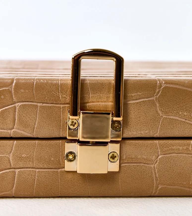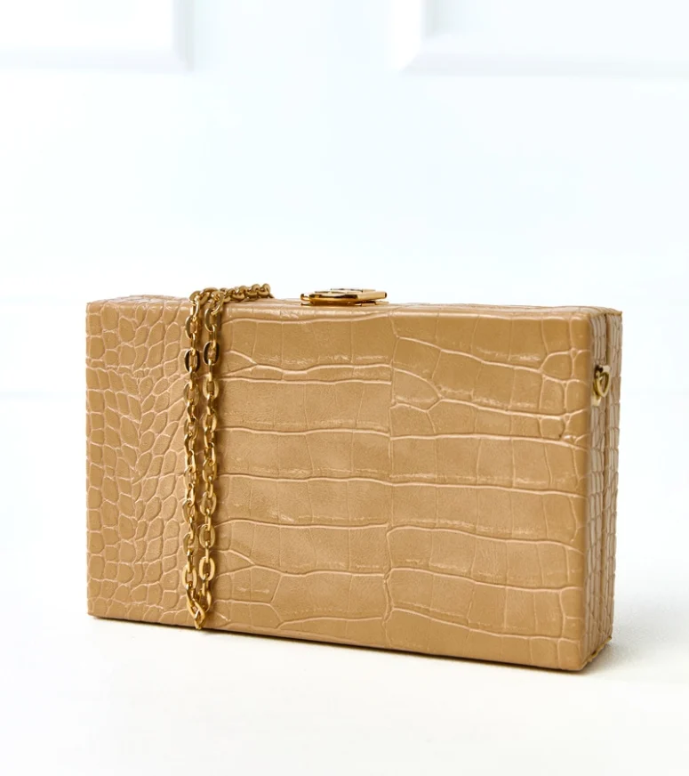 Beżowa torebka typu ,,kuferek” na łańcuszku Dratche to idealny dodatek do każdej stylizacji. Jej wygodny rozmiar pozwala pomieścić wszystkie niezbędne drobiazgi, a jednocześnie dodaje szlachetności i elegancji. Słowa kluczowe: wygoda, sztos, stylowe, idealnie oddają charakter tego akcesorium. Dzięki niej poczujesz się pewnie i modnie w każdej sytuacji!