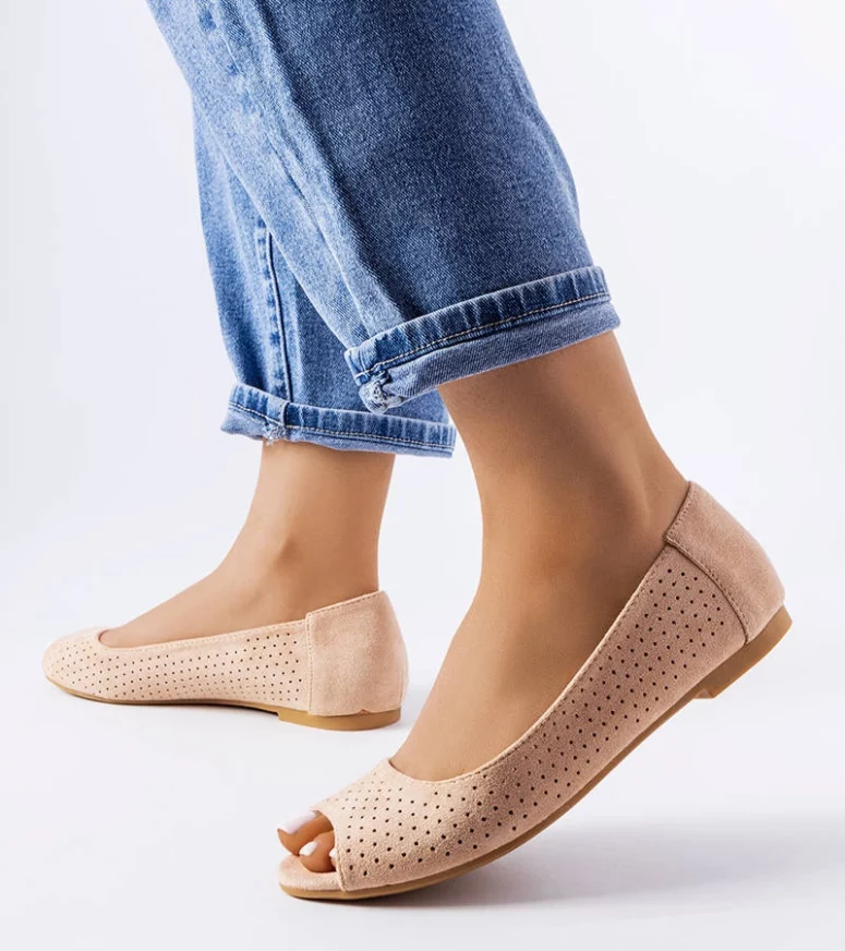 Beżowe ażurowe balerinki Agate