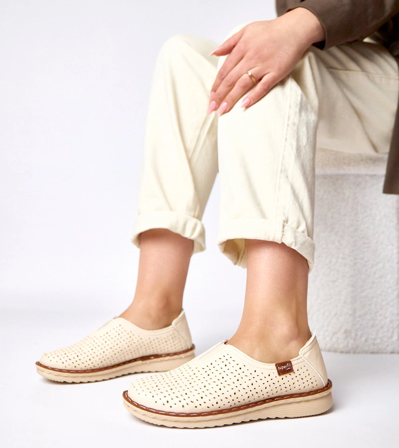 Beżowe ażurowe wsuwane półbuty Rosa