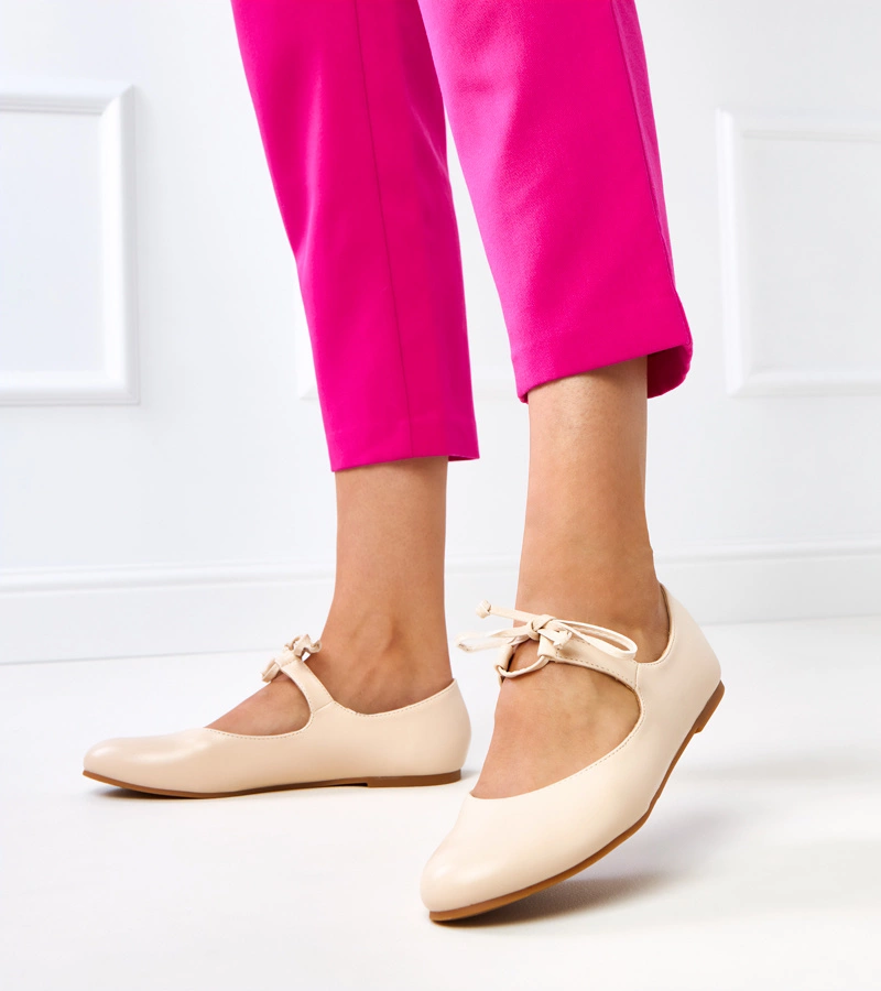 Charakterystycznym elementem modelu Beżowe balerinki wiązane na kostce Sallay jest subtelne, ozdobne wiązanie wokół kostki. Ten detal nie tylko pięknie podkreśla linię nóg, ale także pozwala idealnie dopasować obuwie do stopy, zapewniając stabilność podczas chodzenia. Miękka, przyjemna w dotyku wkładka podnosi komfort użytkowania nawet przy dłuższym noszeniu, a płaska podeszwa minimalizuje zmęczenie stóp. Delikatnie zaokrąglony nosek dodaje całości dziewczęcego uroku, dzięki czemu balerinki Gemre sprawdzą się w wielu sytuacjach – w pracy, na uczelni, spacerze czy spotkaniu z przyjaciółmi.