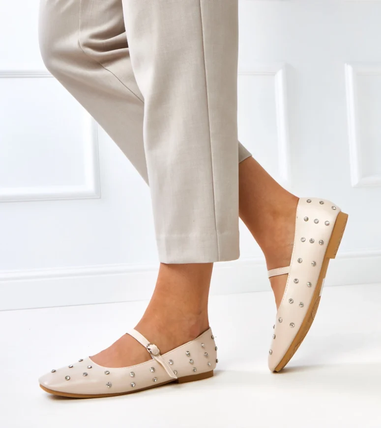 Model Heidi wyróżnia się pięknym zdobieniem w postaci połyskujących kryształków, które dodają obuwiu luksusowego charakteru i przyciągają wzrok przy każdym kroku. Dzięki temu te beżowe balerinki sprawdzą się zarówno do pracy, na spotkanie ze znajomymi, jak i na przyjęcie czy rodzinne uroczystości. To idealny wybór dla kobiet, które chcą dodać swoim stylizacjom odrobiny blasku, nie rezygnując przy tym z komfortu.