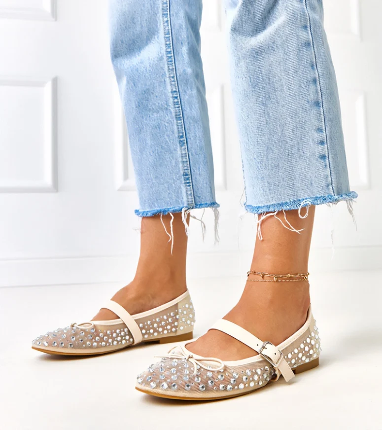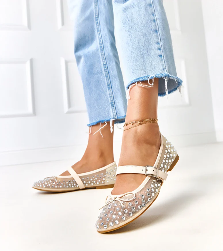 Odkryj wyjątkowe beżowe baleriny siateczkowe z kryształkami Elasida, które łączą w sobie elegancję, lekkość i codzienną wygodę. To idealny wybór dla kobiet ceniących subtelne, a zarazem efektowne obuwie na każdy dzień. Delikatna, przewiewna siateczka połączona z połyskującymi kryształkami tworzy niepowtarzalny design, który przyciąga spojrzenia i doskonale uzupełnia zarówno casualowe, jak i bardziej eleganckie stylizacje.