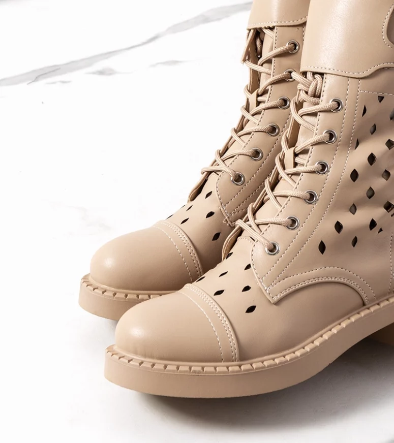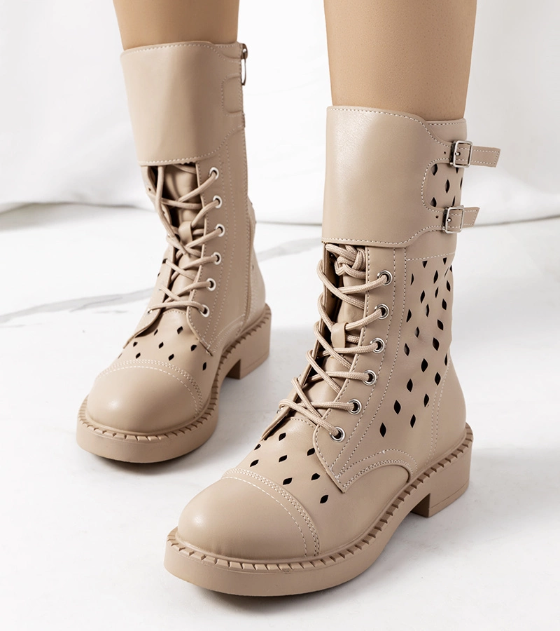 Model Finlay pomoże stworzyć Ci stylizacje które zachwycą niemal każdego 😉 Fason stylizowany na glany ozdobiony kobiecym ażurowym wzorem wygląda obłędnie! Buty są wykonane z wysokiej jakości skóry ekologicznej. Cholewkę dopasujemy sznurowaniem oraz szerokim pasem zapinanym na klamerki. Numeracja standardowa, prosimy kierować się swoim rozmiarem.