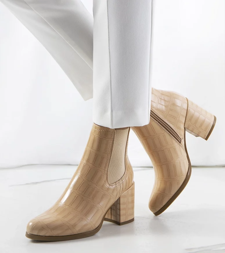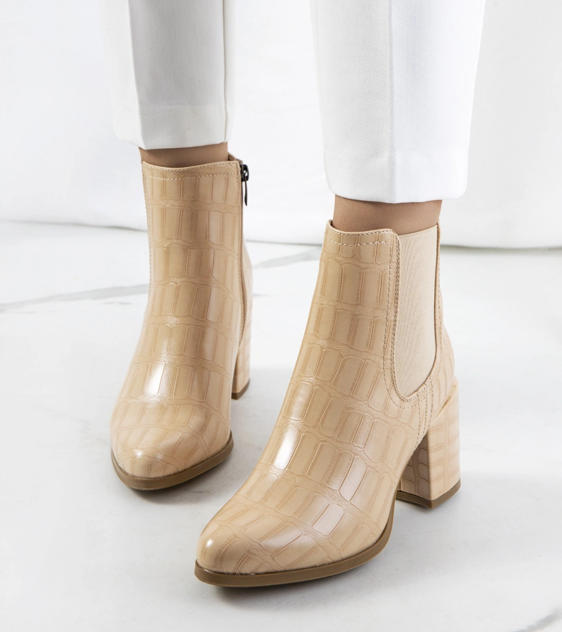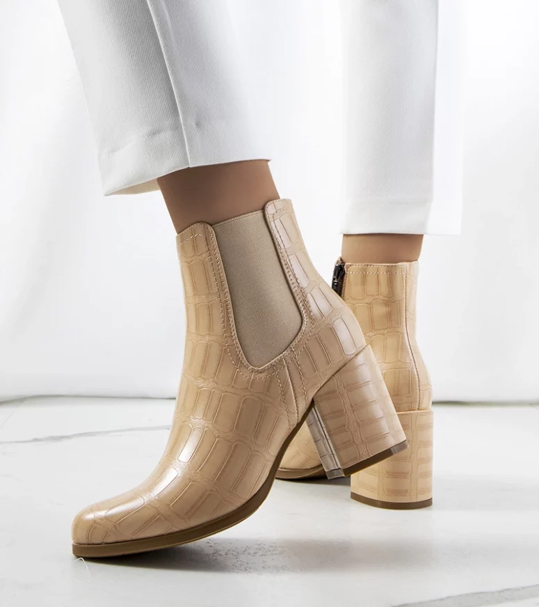 Botki Easthaven wykonane ze skóry ekologicznej. Zapinane suwakiem błyskawicznym od wewnętrznej strony. Osadzone na średniej wysokości słupku. Udekorowane tłoczeniem imitującym skórę krokodyla. Lekko ocieplane wewnątrz. Wygodne, klasyczne i bardzo eleganckie botki dopełnią wiele jesiennych stylizacji. Numeracja standardowa. prosimy kierować się swoim rozmiarem.