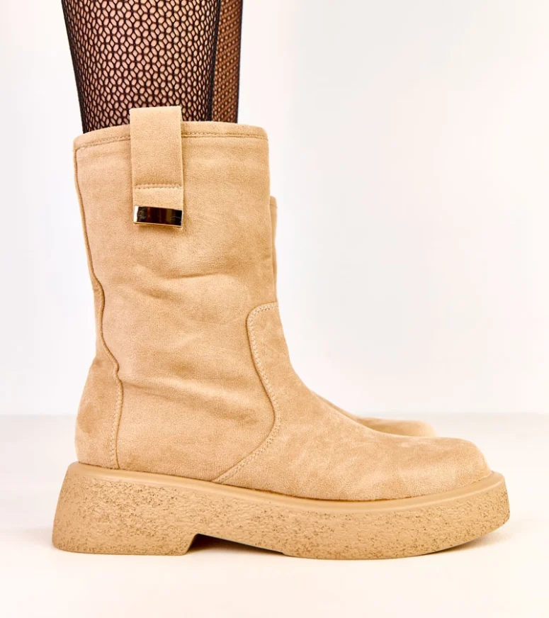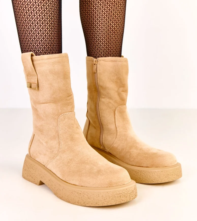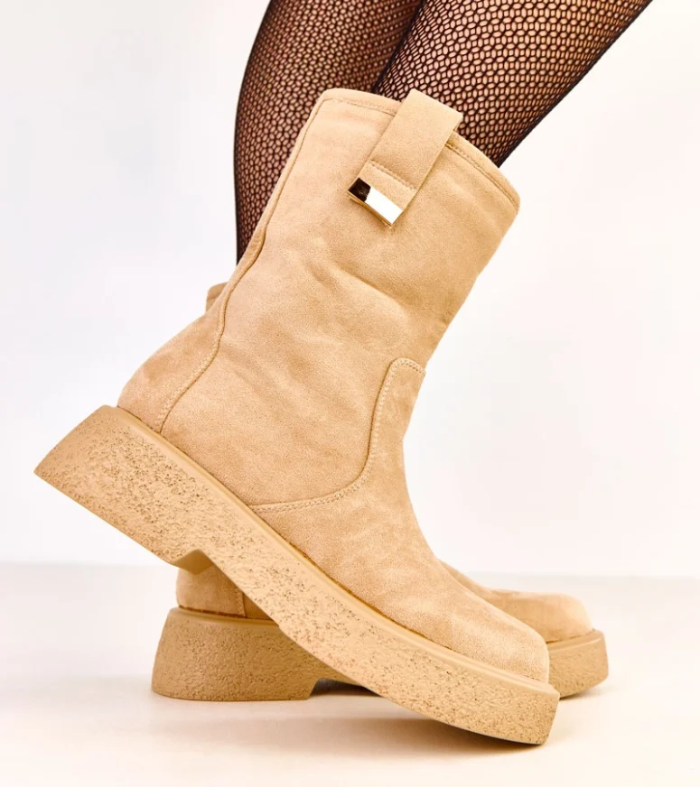 Odkryj wyjątkowy styl i wygodę, jakie oferują beżowe botki ekozamszowe ze złotą ozdobą Mileda. To idealna propozycja dla kobiet, które cenią sobie elegancję na co dzień oraz komfort noszenia przez cały dzień. Uniwersalny, stonowany kolor beżu w połączeniu z delikatnym, miękkim ekozamszem tworzy obuwie, które bez trudu dopasujesz do wielu stylizacji – zarówno casualowych, jak i bardziej eleganckich.