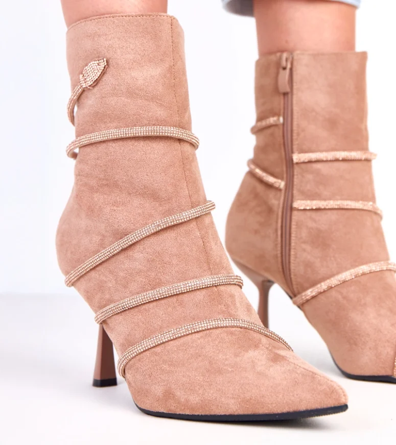 Beżowe botki na szpilce zdobione cyrkoniami Nethe