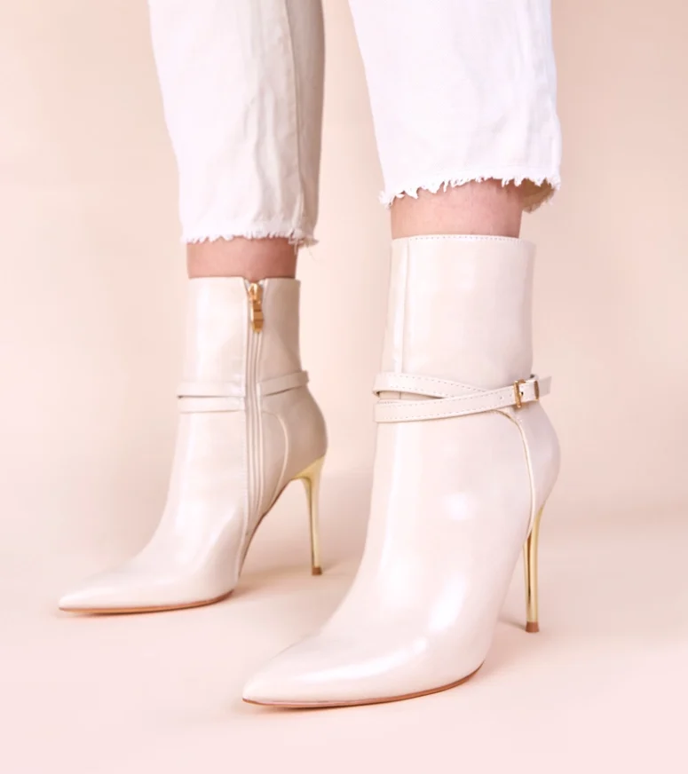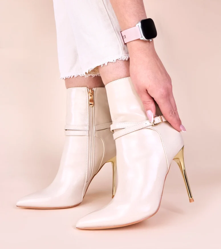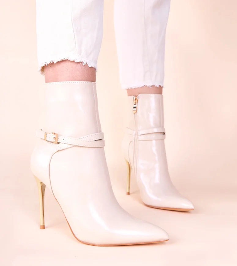 Wykonane z najwyższej jakości materiałów, nasze botki zapewniają nie tylko niepowtarzalny wygląd, ale także komfort noszenia przez cały dzień. Beżowy kolor dodaje im subtelności, a złota szpilka przyciąga wzrok i dodaje nuty luksusu. Połysk nadaje butom niepowtarzalnego charakteru, dzięki czemu każda kobieta poczuje się w nich wyjątkowo.