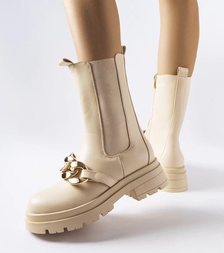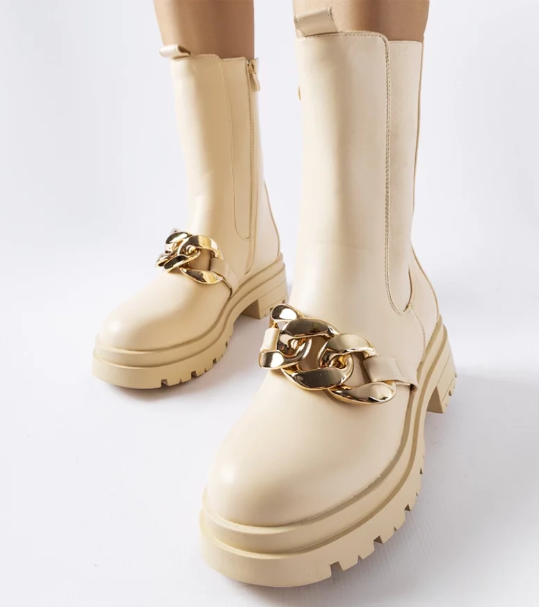Botki mają płaski obcas, co sprawia, że są wygodne i idealne do noszenia na co dzień. Jednak dla tych, którzy preferują nieco wyższy obcas, dostępna jest również wersja na średnim obcasie. Wyposażone w praktyczny zamek błyskawiczny, te botki są bardzo łatwe do założenia i zdejmowania. Ich okrągły nosek zapewnia komfort i swobodę ruchu. Damskie botki Thierry zostały wykonane z wysokiej jakości gumy, co gwarantuje ich trwałość i odporność na różne warunki pogodowe. Dodatkowo, są ocieplane, co sprawia, że są doskonałą opcją na chłodniejsze dni. Te beżowe botki są także wysokie za kostkę, co dodaje im pewnego rodzaju elegancji i klasy. Można je nosić zarówno na co dzień, jak i na specjalne okazje. Podsumowując, beżowe botki z łańcuchem Thierry to doskonały wybór dla wszystkich modnych kobiet, które szukają ciepłych, wygodnych i stylowych butów na zimę. Ich innowacyjny design i wysoka jakość sprawiają, że stanowią nieodłączny element garderoby każdej fashionistki.