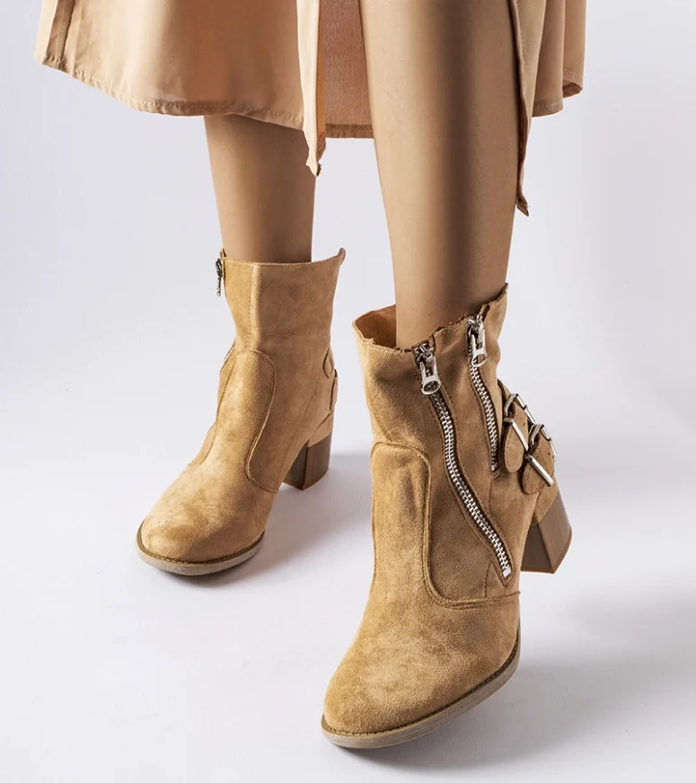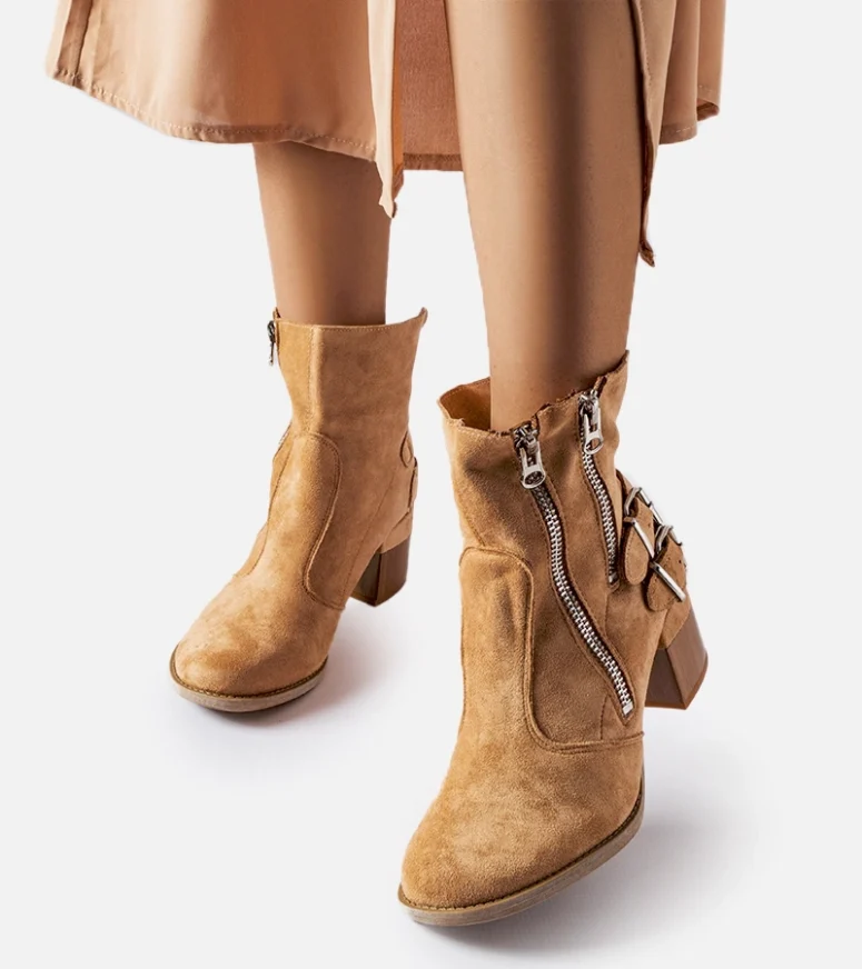 Botki są prawdziwie na czasie – pasują do wielu różnych stylizacji, dodając im nuty elegancji i szyku. Ich beżowy kolor jest ponadczasowy i świetnie komponuje się z innymi odcieniami. Okrągły nosek dodaje im delikatności i kobiecości. Wykonane z wysokiej jakości tworzywa sztucznego, te botki są odporne na deszcz i śnieg, co czyni je idealnymi na zimowe dni. Dodatkowo, są one ciepłe, dzięki czemu nogi będą chronione przed chłodem nawet w najbardziej mroźne dni. Botki Plourde mają średni obcas, który nadaje im subtelnej elegancji i dodaje pewności siebie. Są doskonałe zarówno na co dzień, jak i na specjalne okazje. To rewolucyjne buty, które podbijają serca wielu kobiet. Ich wysoki fason za kostkę dodaje im charakteru i sprawia, że stają się one centralnym elementem każdej stylizacji. Niezależnie od tego, czy postawisz na jeansy i sweter czy elegancką sukienkę, te botki z pewnością dodadzą Ci szyku i klasy. Beżowe botki Plourde to doskonały wybór dla wszystkich kobiet pragnących wyglądać modnie i stylowo nawet w chłodne dni. Niezależnie od okazji, te buty będą idealnym uzupełnieniem Twojej garderoby.