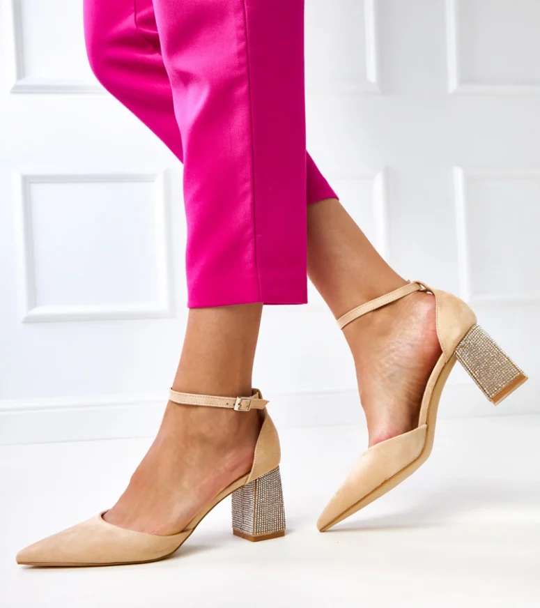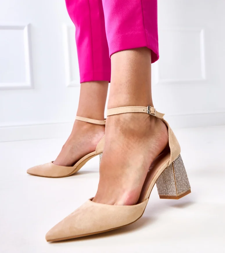 Wykonane z najwyższej jakości materiałów, te beżowe czółenka gwarantują trwałość i komfort noszenia przez cały dzień. Słupkowy obcas, zdobiony delikatnymi cyrkoniami, nie tylko dodaje butom uroku, ale także zapewnia stabilność i wygodę nawet podczas długiego użytkowania. Dzięki temu model Sona idealnie sprawdzi się zarówno na co dzień, jak i na specjalne okazje.