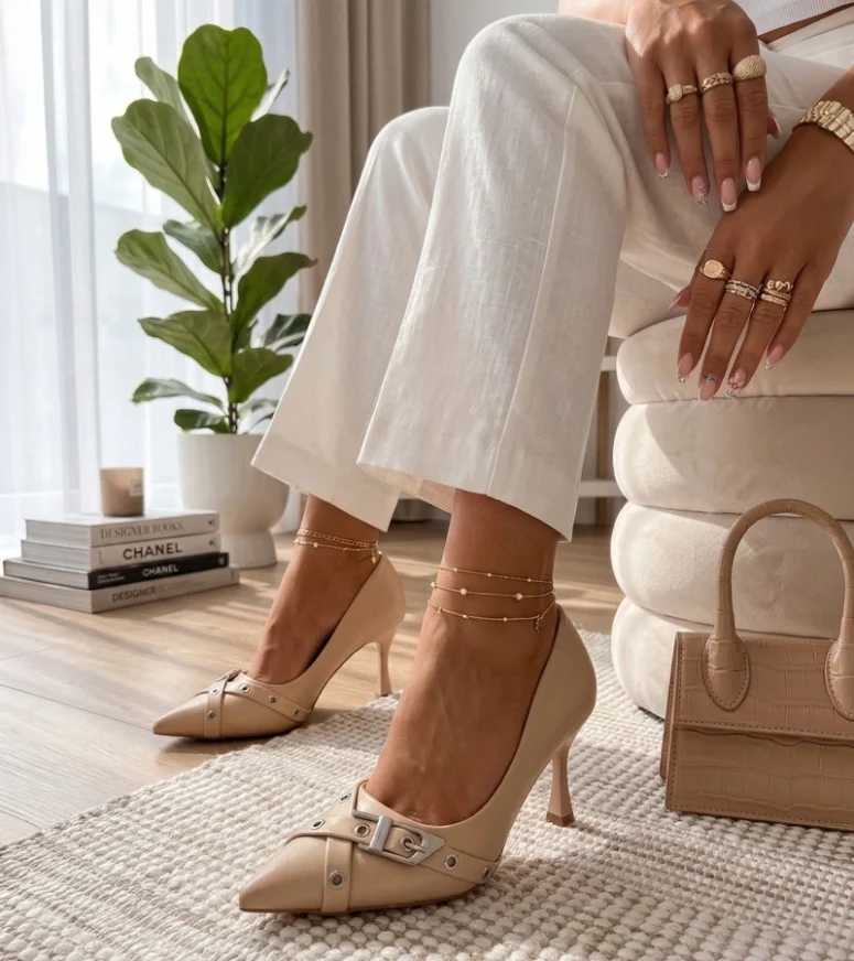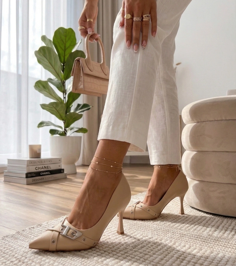 Beżowe Czółenka Na Szpilce Zdobione Klamerką Aeliana