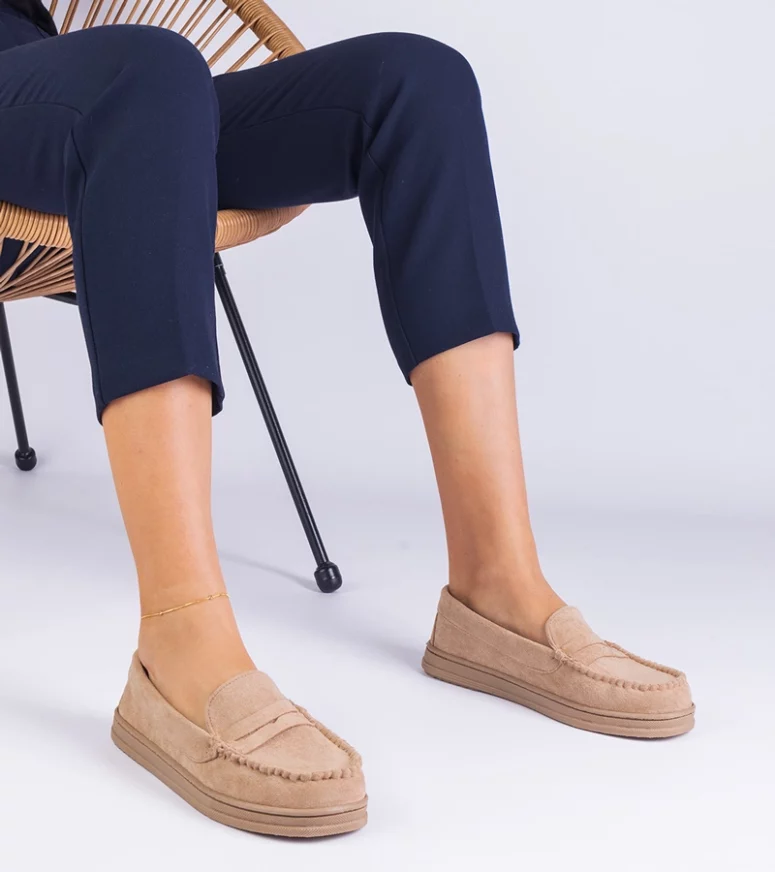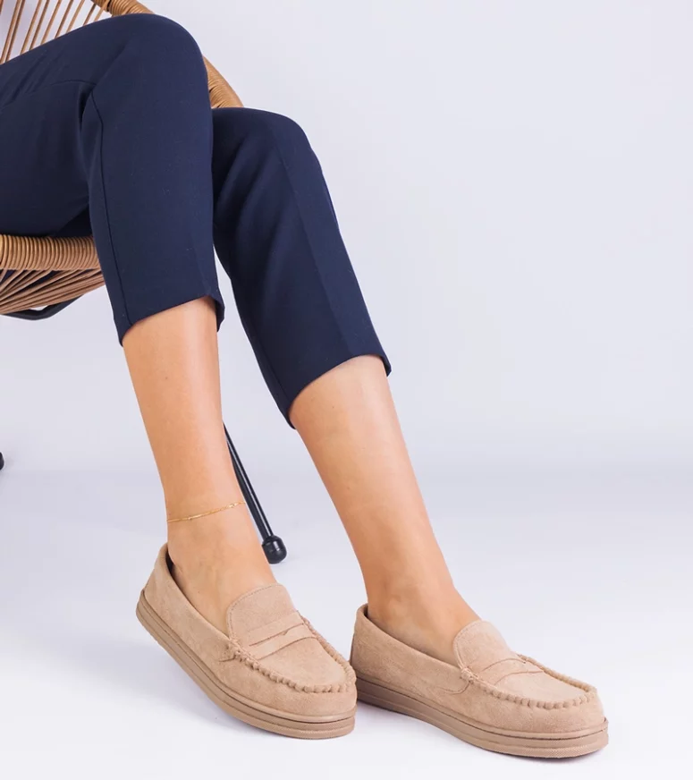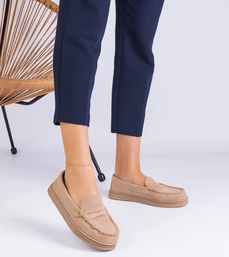 Beżowe damskie mokasyny z ekozamszu Sevilia – Gemre