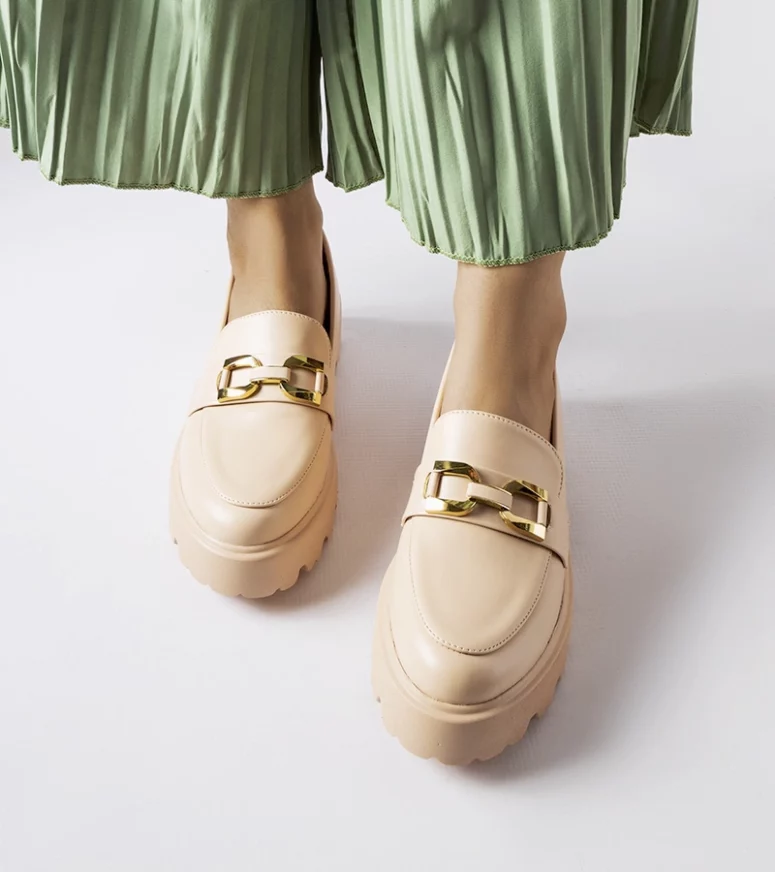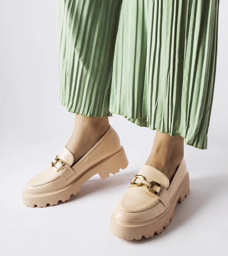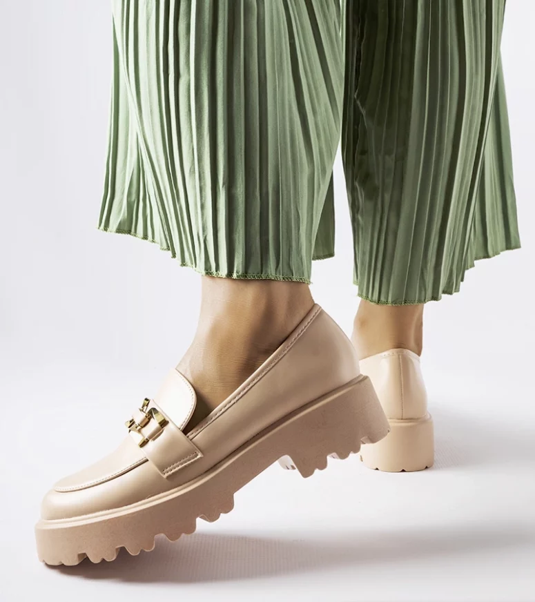 Beżowe damskie mokasyny zdobione klamrą Piazzo