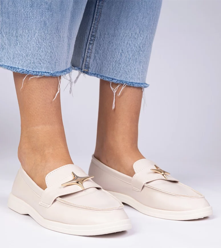 Beżowe Damskie Mokasyny ze Złotą Ozdobą Senna – Gemre