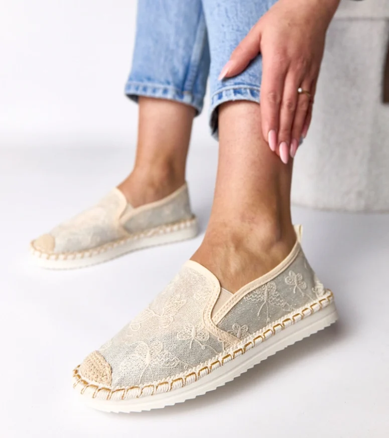 Beżowe espadryle zdobione brokatem Lucie