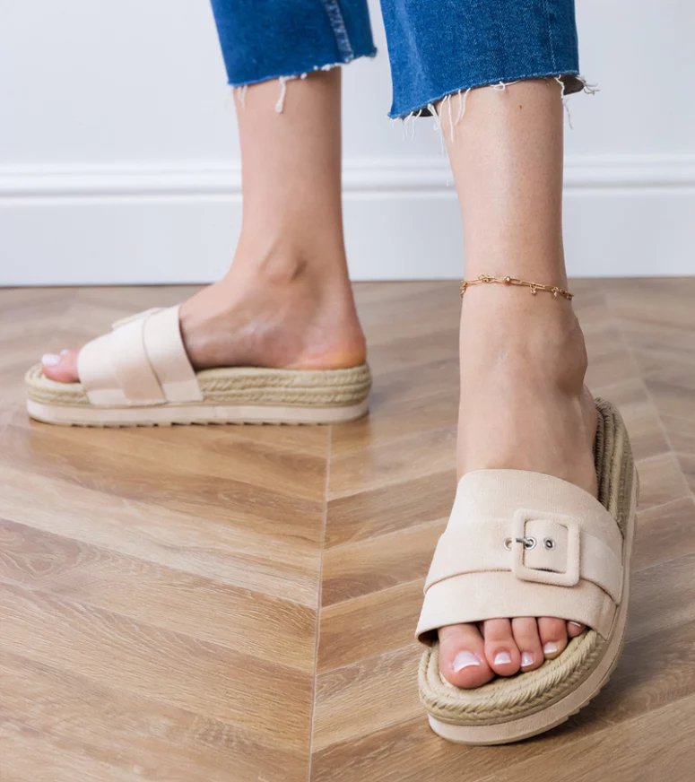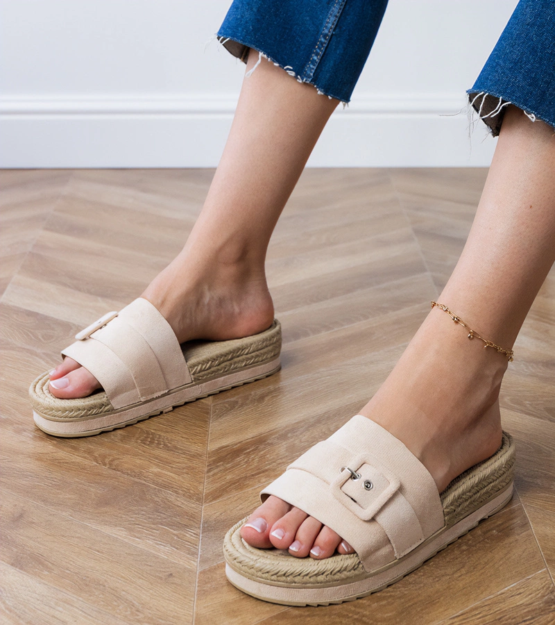 Model Lunda zachwyca subtelną, ale efektowną ozdobną klamerką, która nadaje obuwiu charakteru i podkreśla jego elegancki styl. Stabilna platforma nie tylko wysmukla sylwetkę, ale też zapewnia wygodę podczas chodzenia, redukując obciążenie stóp. Dzięki temu beżowe klapki na platformie świetnie sprawdzą się podczas długich spacerów, zakupów czy letnich wyjść ze znajomymi. To idealne klapki na lato, które łączą lekkość z modnym wyglądem.