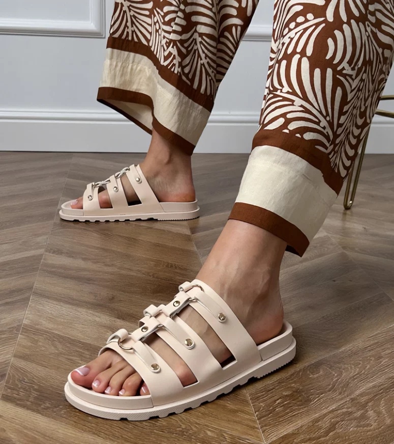 Nie trać czasu i dodaj do swojej kolekcji wyjątkowe klapki Elenois. Zamów już dziś i ciesz się modnym wyglądem oraz komfortem każdego kroku. Sprawdź, jak beżowe klapki rzymskie z ćwiekami Elenois mogą odmienić Twoją stylizację i zainspiruj się najnowszymi trendami od Gemre!