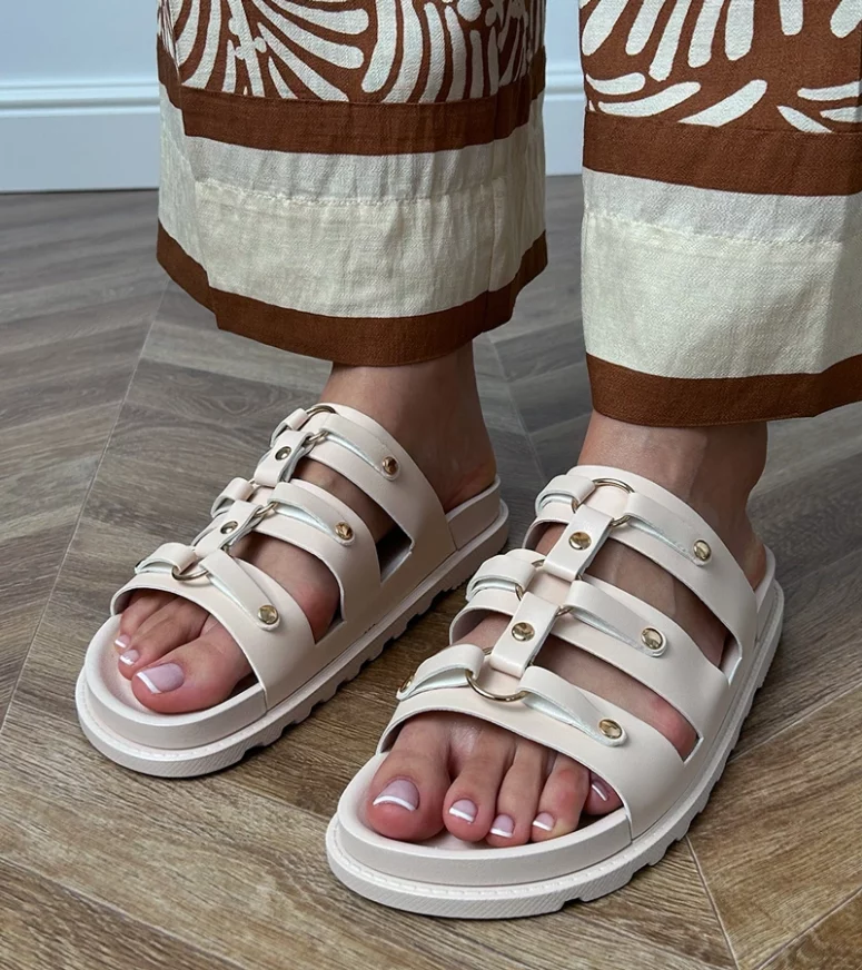 Te klapki rzymskie wyróżniają się modnym designem z ćwiekami, które dodają im odrobinę rockowego charakteru. Dzięki uniwersalnemu beżowemu kolorowi, z łatwością dopasujesz je do wielu stylizacji. Idealnie sprawdzą się zarówno na co dzień, jak i na wyjątkowe okazje. Niezależnie od tego, czy wybierasz się na spacer po plaży, czy wieczorne wyjście z przyjaciółmi, klapki Elenois będą doskonałym wyborem.