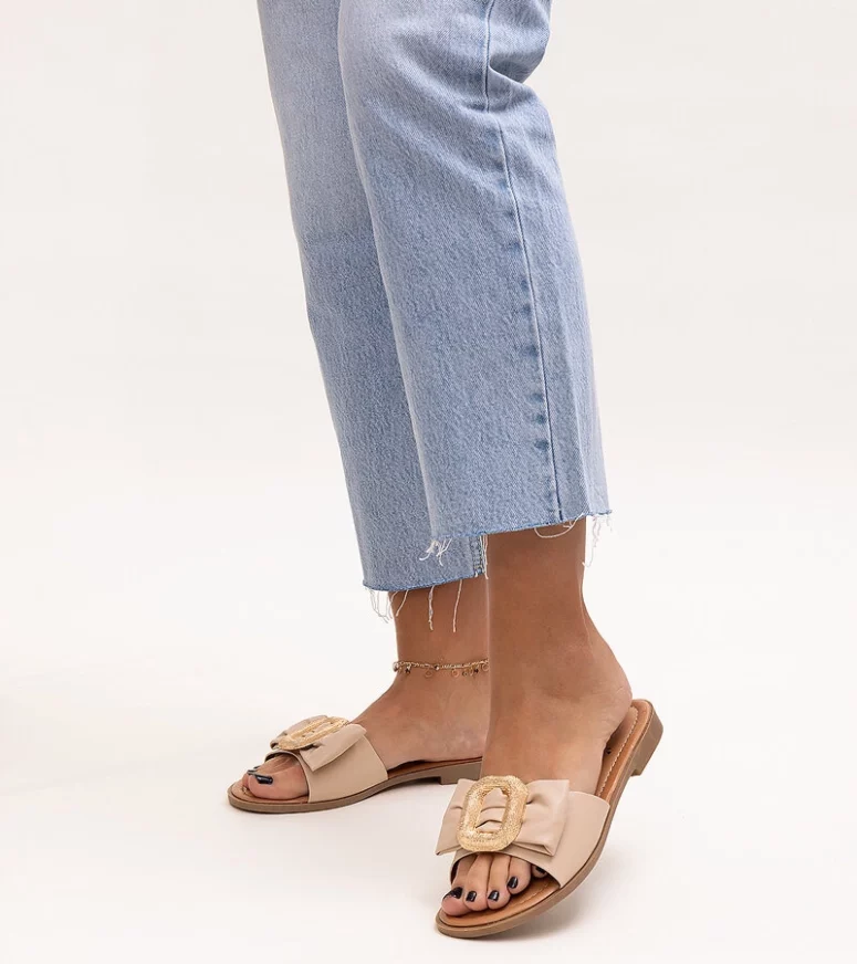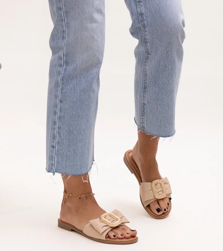Beżowe klapki z klamerką Limera to idealny wybór na trendy letni look! Wykonane z elastycznej gumy, są bardzo wygodne i łatwe w zakładaniu dzięki wsuwanej konstrukcji. Ich innowacyjny design z okrągłym nosem zapewnia maksymalny komfort podczas noszenia, zwłaszcza na gorące dni. Dodatkowo ozdobiona klamra nadaje im eleganckiego charakteru. Te stylowe klapki z pewnością będą Twoim ulubionym obuwiem na lato!