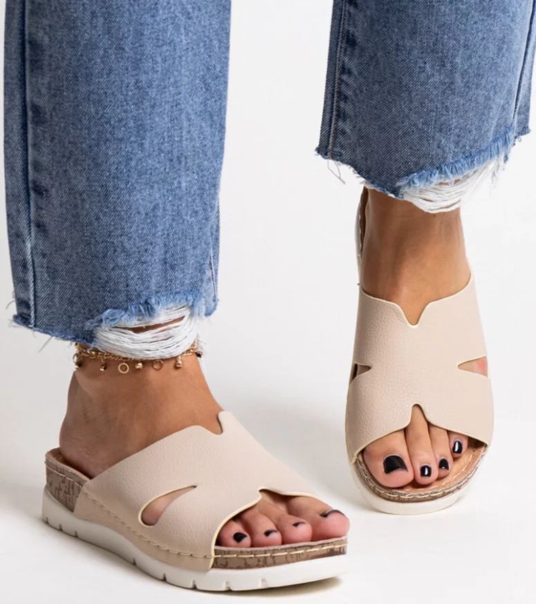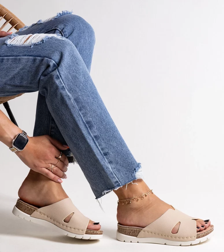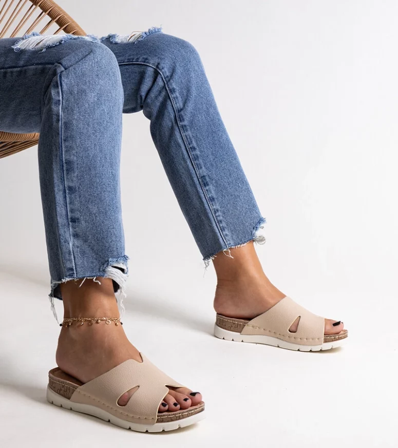 Beżowe klapki ze skórzaną wkładką Masha