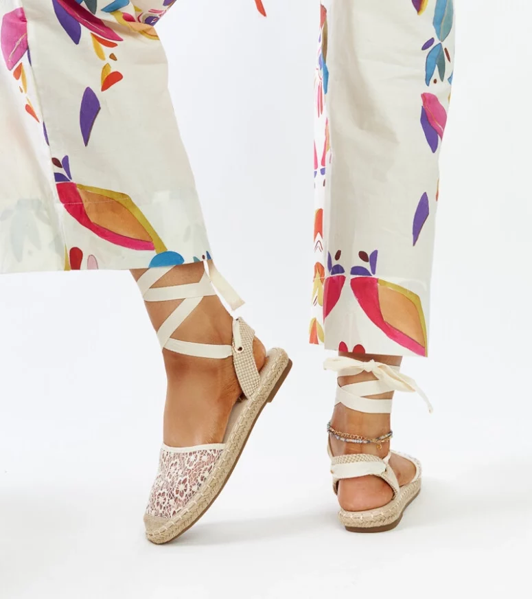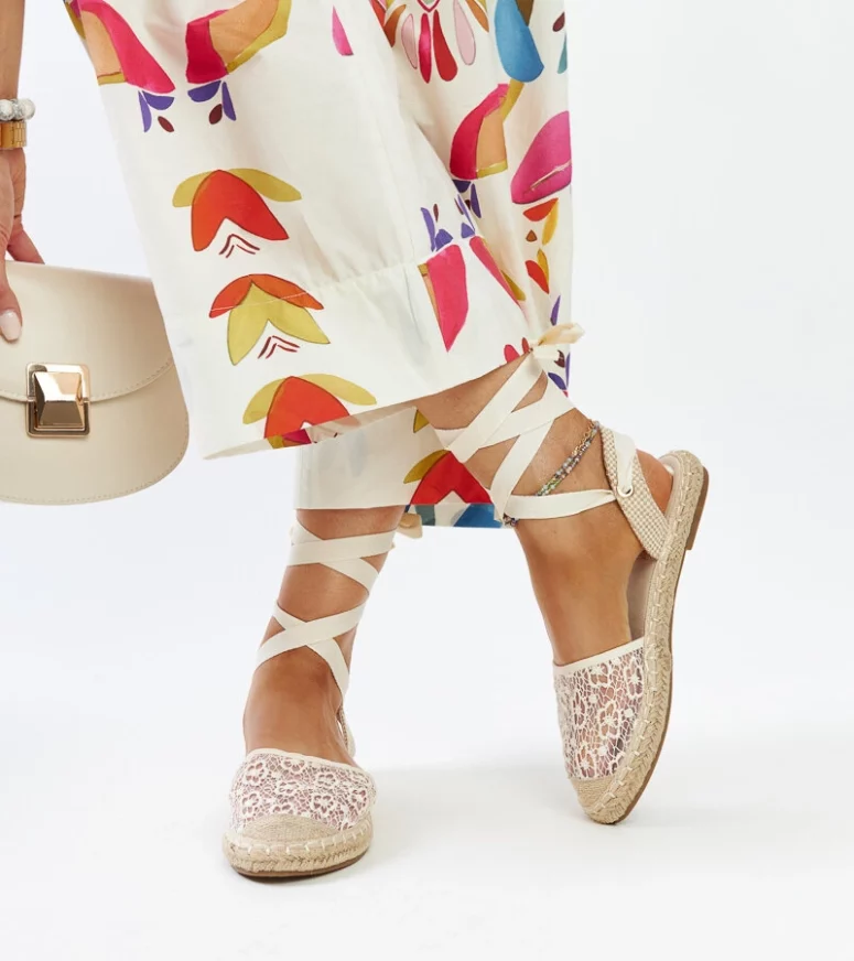 Letnie espadryle Teha to idealny wybór na gorące dni. Niedrogie, ale niepozbawione stylu, są wykonane z beżowej koronki, która dodaje im innowacyjnego charakteru. Wygodne i praktyczne, mają odkrytą piętę i okrągły nosek. Dzięki wiązaniu można je dopasować do swojej stopy, a elastyczna guma sprawia, że są łatwe do wsunięcia. Espadryle posiadają płaski obcas, co czyni je idealnymi na długie spacery czy wypady na plażę. Krój jest lekki i przewiewny, dzięki czemu będziesz czuć się komfortowo przez cały dzień. Idealne buty na letnie przygody!