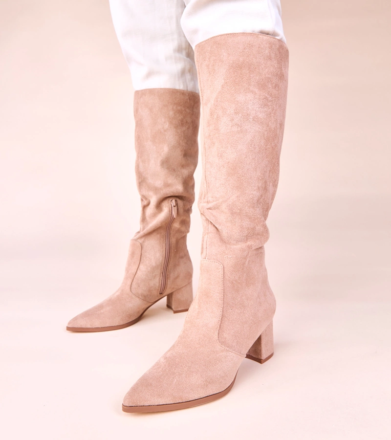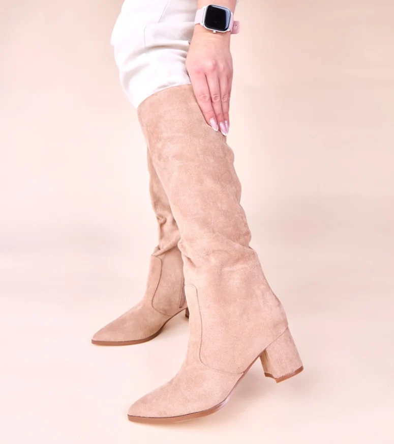 Stabilny obcas na słupku wysmukla sylwetkę i dodaje pewności siebie przy każdym kroku. Jednocześnie zapewnia komfort nawet podczas długiego noszenia, dzięki czemu beżowe kozaki na słupku Shane będą idealne do pracy, na uczelnię czy spotkania ze znajomymi. Miękka w dotyku cholewka z ekozamszu dobrze układa się na nodze, podkreślając jej kształt i dodając całości eleganckiego charakteru. Klasyczny fason uzupełniony jest o praktyczne detale, które ułatwiają zakładanie i zdejmowanie obuwia oraz zwiększają wygodę użytkowania.