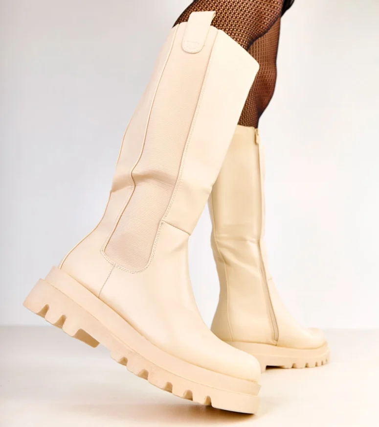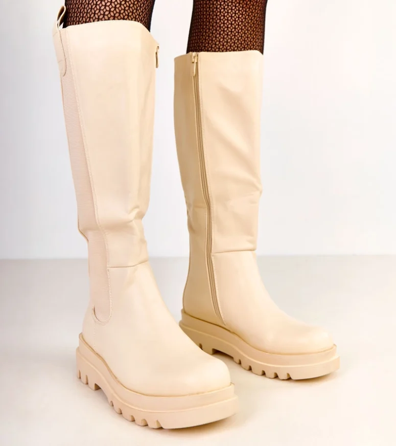 Przedstawiamy beżowe kozaki z elastyczną wstawką na cholewce Maja, które zapewnią Ci zarówno styl, jak i komfort na najwyższym poziomie. Te kozaki płaskie zostały zaprojektowane z myślą o nowoczesnych kobietach, które cenią sobie elegancję i wygodę na co dzień.