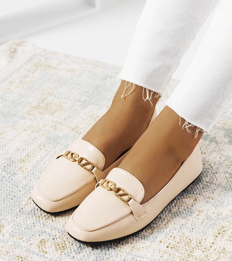 Beżowe mokasyny z kwadratowym noskiem Milder