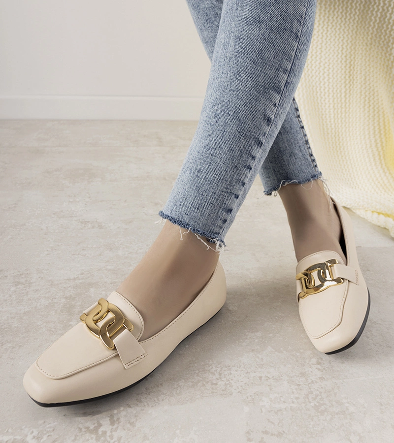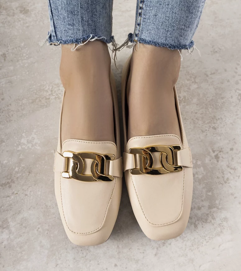 Mokasyny Hashtag robią furorę. Obuwie jest wykonane ze skóry ekologicznej. Przód cholewki jest ozdobiony aplikacją na wzór łańcucha. Idealnie się sprawdzą jako dodatek do jesiennych i wiosennych stylizacji. Numeracja standardowa, prosimy kierować się swoim rozmiarem.