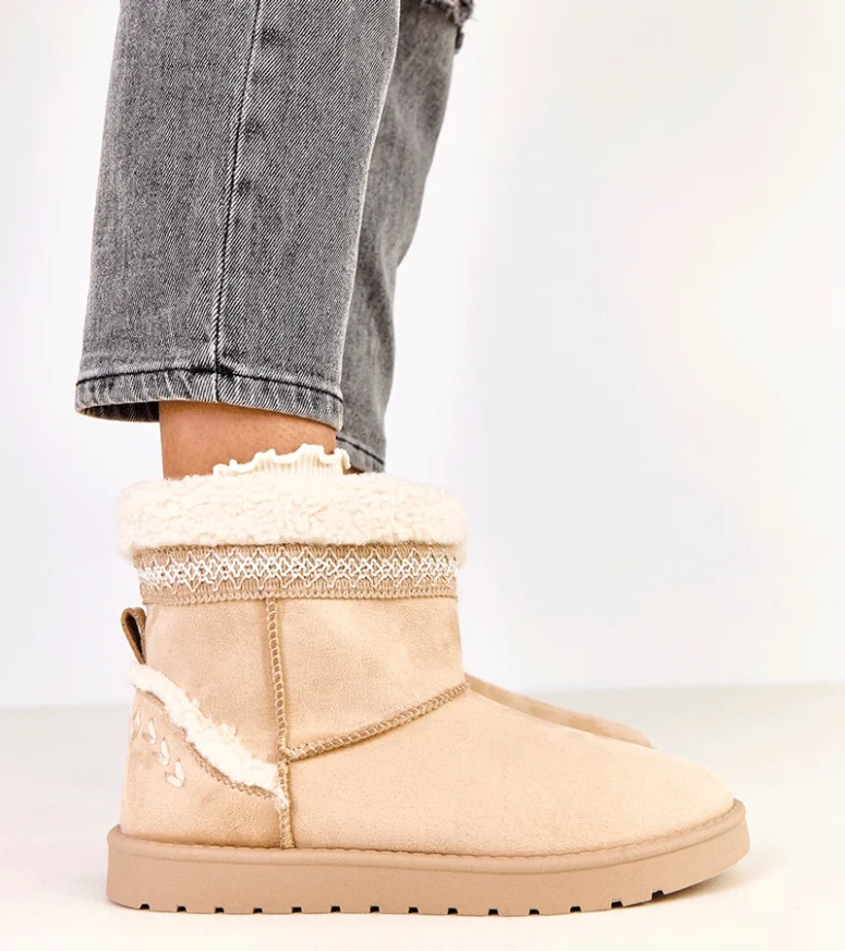Przedstawiamy beżowe niskie śniegowce zdobione haftem Sensila – doskonałe połączenie stylu i funkcjonalności. Te wyjątkowe śniegowce damskie zostały zaprojektowane z myślą o kobietach, które cenią sobie elegancję i komfort w zimowe dni. Dzięki starannie wyselekcjonowanym materiałom, nasze buty zimowe zapewniają ciepło i ochronę nawet w najchłodniejsze dni.