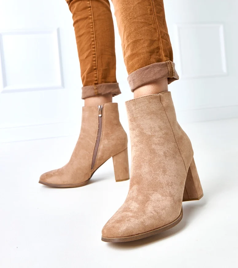 Damskie botki mają słupkowy obcas, który dodaje im elegancji i sprawia, że noga prezentuje się smuklej. Ich kwadratowy nosek nadaje im nowoczesnego charakteru, a jednocześnie zapewnia komfortową przestrzeń dla palców. Botki Torricelli są idealnym wyborem na zimowe dni, ponieważ są doskonale ocieplane, chroniąc stopy przed chłodem. Ich wysokość za kostkę dodatkowo zabezpiecza przed wiatrem i śniegiem. W połączeniu z wysokim obcasem sprawiają, że noga wydaje się bardziej wysmukła i atrakcyjna. To niezwykle postępowe buty, które zachwycają swoim designem i funkcjonalnością. Wykonane z najwyższą starannością, są trwałe i odporne na uszkodzenia. Beżowy kolor dodaje im uniwersalności, pasując do wielu stylizacji i okazji. Jeśli szukasz wyjątkowych i stylowych butów na zimę, beżowe botki na słupku Torricelli są doskonałym wyborem. Dodadzą Twojej garderobie elegancji i sprawią, że będziesz wyróżniać się z tłumu. Niech Twój krok będzie modny i komfortowy dzięki tym unikalnym botkom!