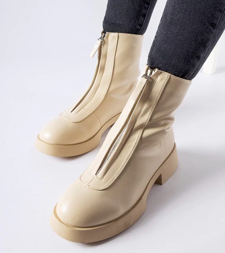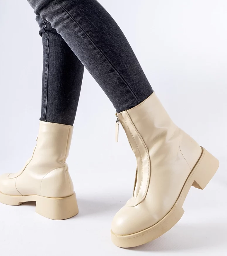 Damskie botki sięgające za kostkę mają okrągły nosek, który gwarantuje swobodę ruchów palców, co przekłada się na komfort podczas długotrwałego noszenia. Dodatkowo, wyposażone w praktyczny suwak po bokach, umożliwiają łatwe i szybkie zakładanie oraz zdejmowanie butów. Botki Baldo charakteryzują się płaskim obcasem, co czyni je świetnym wyborem dla osób preferujących stabilność i wygodę bez rezygnacji z efektownego wyglądu. Beżowy kolor nadaje im uniwersalności, a jednocześnie pozostaje modny i popularny wśród wielu kobiet. Te stylowe botki z pewnością dodadzą charakteru każdej stylizacji, niezależnie od okazji. Bez względu na to, czy postawisz na jeansy i sweter, czy też sukienkę i płaszcz, botki Baldo będą doskonale pasować i dopełnią Twój look. Niezależnie od tego, czy jesteś na spacerze po mieście czy na spotkaniu biznesowym, te botki zapewnią Ci nie tylko wygodę, ale także pewność siebie i elegancję.