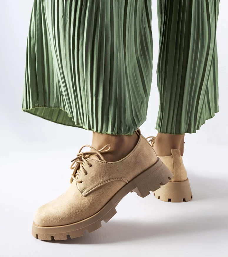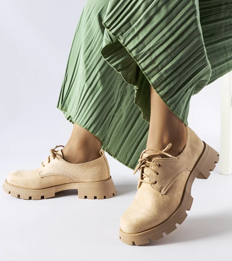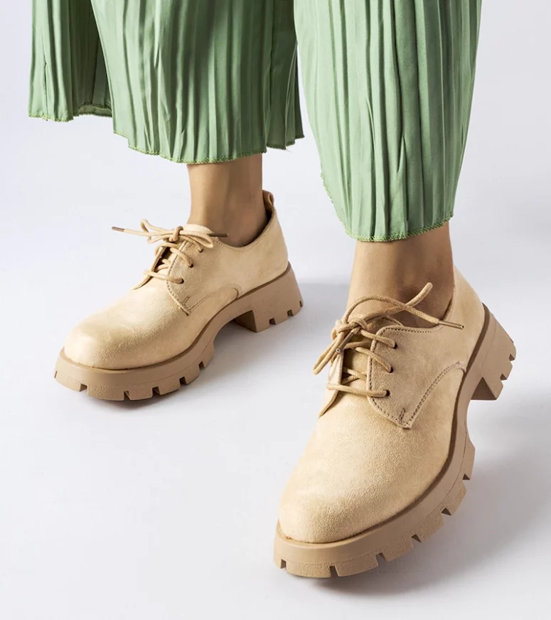 Beżowe półbuty na masywnej podeszwie Coleman są idealnym wyborem na gorące letnie dni. Ten trendowy model posiada okrągły nosek, który dodaje mu elegancji i kobiecego uroku. Półbuty są wykonane z gumy, co sprawia, że są nie tylko modne, ale również bardzo wygodne. Ich niski krój zapewnia odpowiednią wentylację stóp w ciepłe dni, a sznurowane zapięcie umożliwia regulację dopasowania do indywidualnych potrzeb. Te beżowe półbuty na masywnej podeszwie Coleman są na czasie i świetnie pasują do różnych stylizacji letnich, dodając im nutki świeżości i lekkości.
