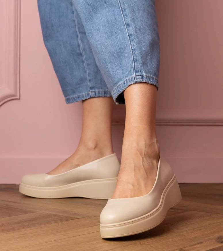 Beżowy kolor dodaje im uniwersalności, dzięki czemu doskonale komponują się z różnorodnymi stylizacjami. Niezależnie od tego, czy wybierasz się do pracy, na spotkanie z przyjaciółmi, czy na wieczorną kolację, te półbuty będą idealnym uzupełnieniem Twojego stroju. Platforma zapewnia dodatkową wysokość i elegancję, jednocześnie dbając o komfort stóp przez cały dzień.