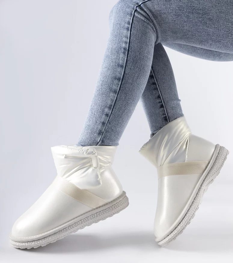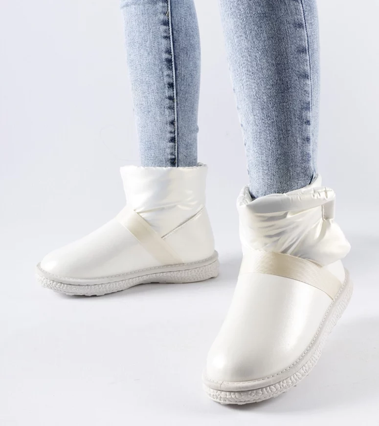 Nowoczesne śniegowce mają modny design i nadają się zarówno do codziennych stylizacji, jak i na specjalne okazje. Ich beżowy kolor dodaje im elegancji i sprawia, że pasują do różnych ubrań. Dzięki gumowej podeszwie zapewniają stabilność i pewność kroków, a platforma podnosi je nieco ponad ziemię, co dodatkowo chroni przed zimnem i wilgocią. Śniegowce Delaune posiadają praktyczne zapięcie na rzepy, które ułatwia ich zakładanie i zdejmowanie. To doskonałe rozwiązanie dla osób, które cenią sobie wygodę i szybkość. Dodatkowo, dzięki temu zapięciu można łatwo dopasować buty do indywidualnych potrzeb. Nie trać czasu na szukanie innych butów na zimę – te beżowe połyskujące krótkie śniegowce Delaune są idealnym wyborem dla Ciebie! Oferują komfort, ciepło i styl, wszystko w jednym. Bądź na topie i przygotuj się na zimę w modny sposób!