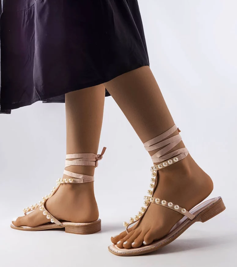 Beżowe sandałki z perełkami Graystone