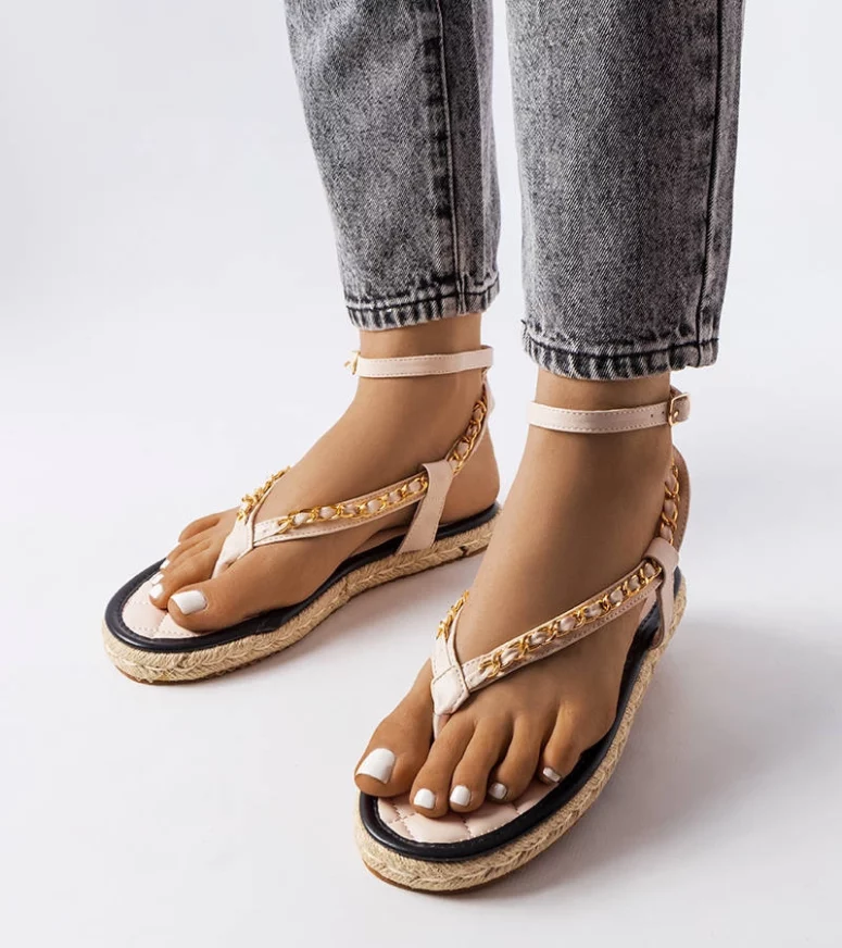 Beżowe sandałki Varieur to must-have dla każdej postępowej kobiety, szukającej innowacyjnych rozwiązań w swoim letnim stylu. Ozdobione łańcuchem, te sandałki z eko-skóry i gumy są doskonałą opcją na gorące dni, gdy chcesz czuć się swobodnie i wygodnie jednocześnie wyglądając modnie. Sandałki posiadają płaski obcas, co sprawia, że są idealne do codziennego użytku. Sprzączka zapewnia idealne dopasowanie do stopy, a sam design dodaje elegancji i kobiecości. Te damskie sandałki Varieur są prawdziwie innowacyjnymi butami, które nie tylko będą Ci towarzyszyć podczas letnich wakacji, ale również będą modne przez wiele sezonów.