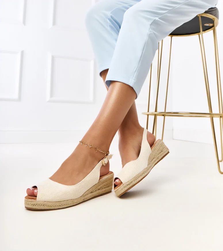 Jeśli szukasz obuwia, które podkreśli Twój styl, a jednocześnie zapewni komfort użytkowania, postaw na beżowe sandały espadryle na koturnie Nevarez Gemre. To klasyka w nowoczesnym wydaniu, stworzona z myślą o kobietach ceniących modę i funkcjonalność. Dodaj je do koszyka i przekonaj się, jak łatwo stworzyć z nimi modne, letnie stylizacje.