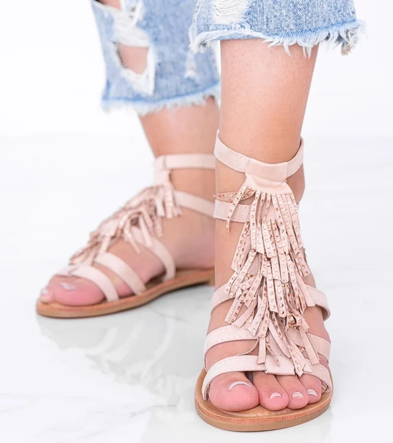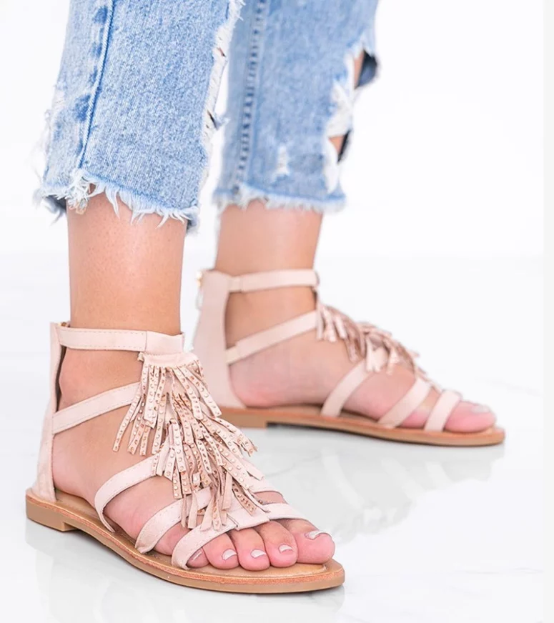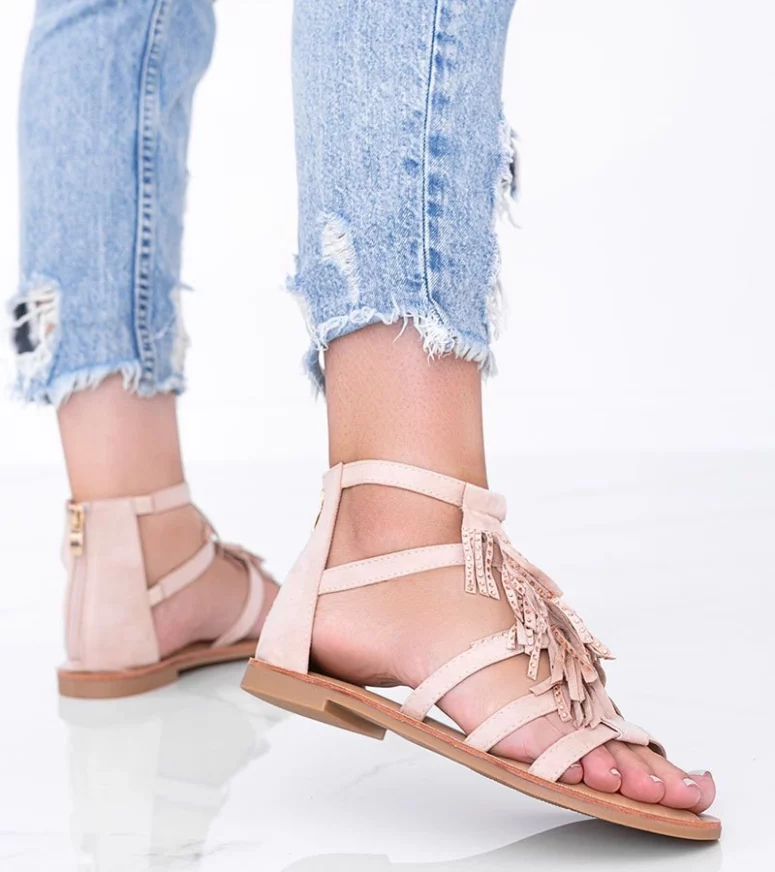 Prezentujemy piękne sandałki Noronha. Buciki zostały wykonane z zamszowej skóry ekologicznej. Paseczki są ozdobione frędzlami z cyrkoniami. Cholewka ma bardzo ładny i ciekawy wzór który nadje im to coś 😉 Świetnie się sprawdzą jako wygodny i modny dodatek letnich stylizacji. Sandałki są zapinane z tyłu na suwak. Numeracja standardowa, prosimy kierować się swoim rozmiarem.