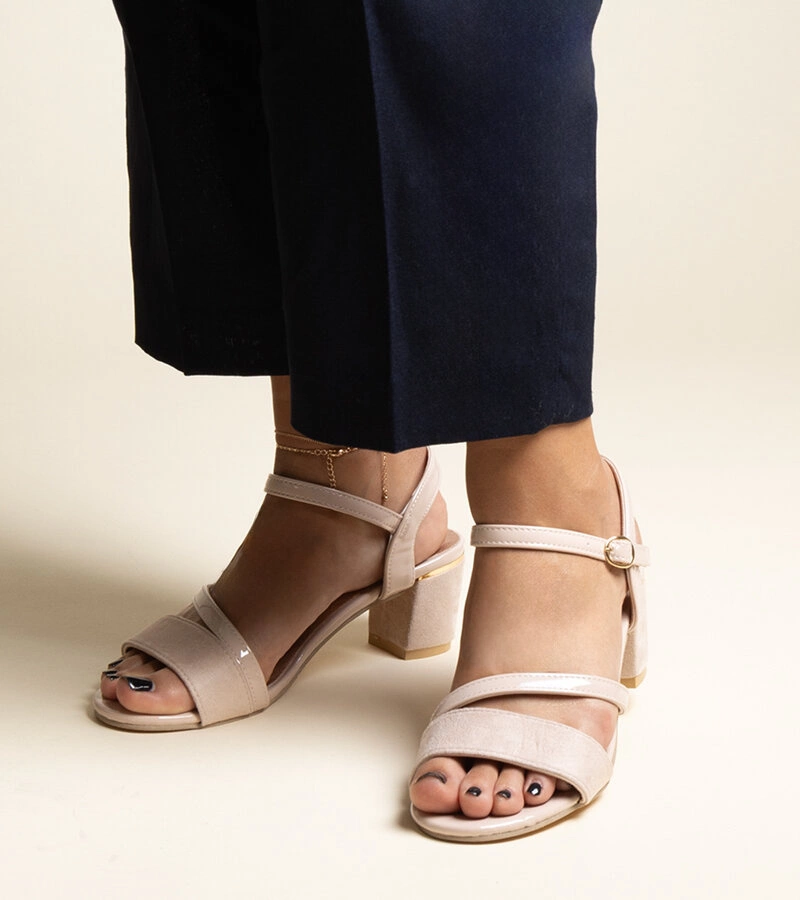 Beżowe sandały na słupku z polaczeniem materiałów Hambly to absolutny hit tego sezonu! Modne, trendy i idealne na gorące letnie dni. Wykonane z lakierowanego tworzywa sztucznego, zapinane na sprzączkę, są nie tylko stylowe, ale także wygodne. Idealne do każdej letniej stylizacji!
