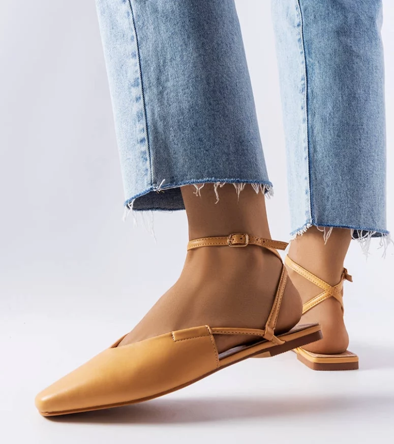 Sandały Jehovah na płaskim obcasie, zapinane na sprzączkę z zakrytym noskiem. Wykonane z ekoskóry. W takich sandałkach nie przejdziesz niezauważona. Uroczo zaprezentują się w duecie ze zwiewną sukienką o gładkim wzorze. Numeracja standardowa, sugerujemy kierować się swoim rozmiarem.