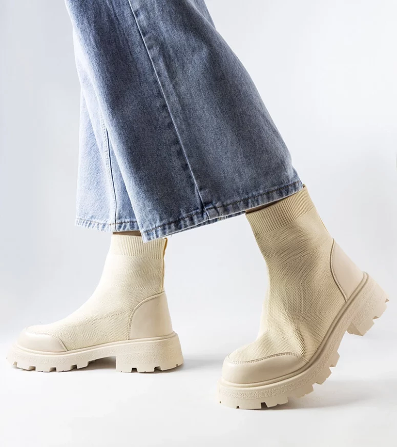 Beżowe skarpetkowe botki Lonte