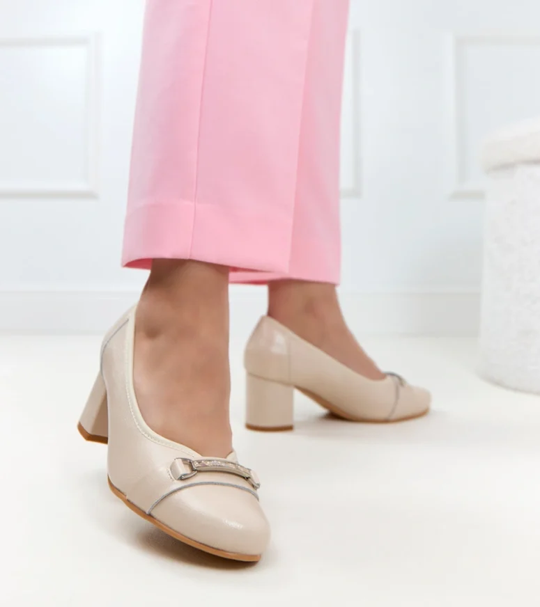 Beżowe Skórzane Czółenka Z Wyprofilowaną Wkładką Cambell