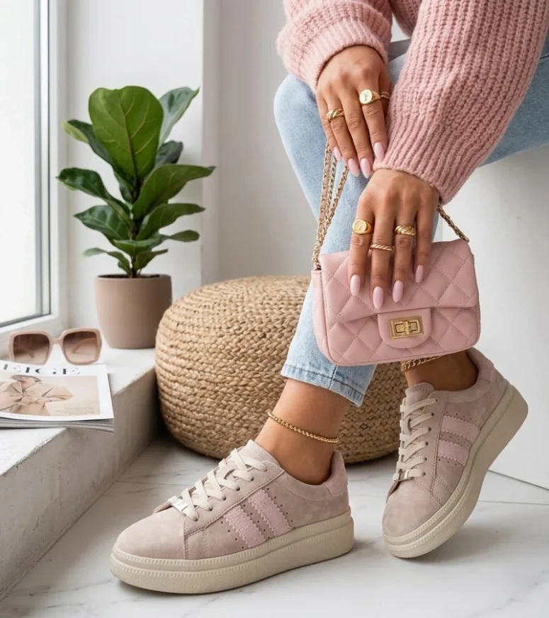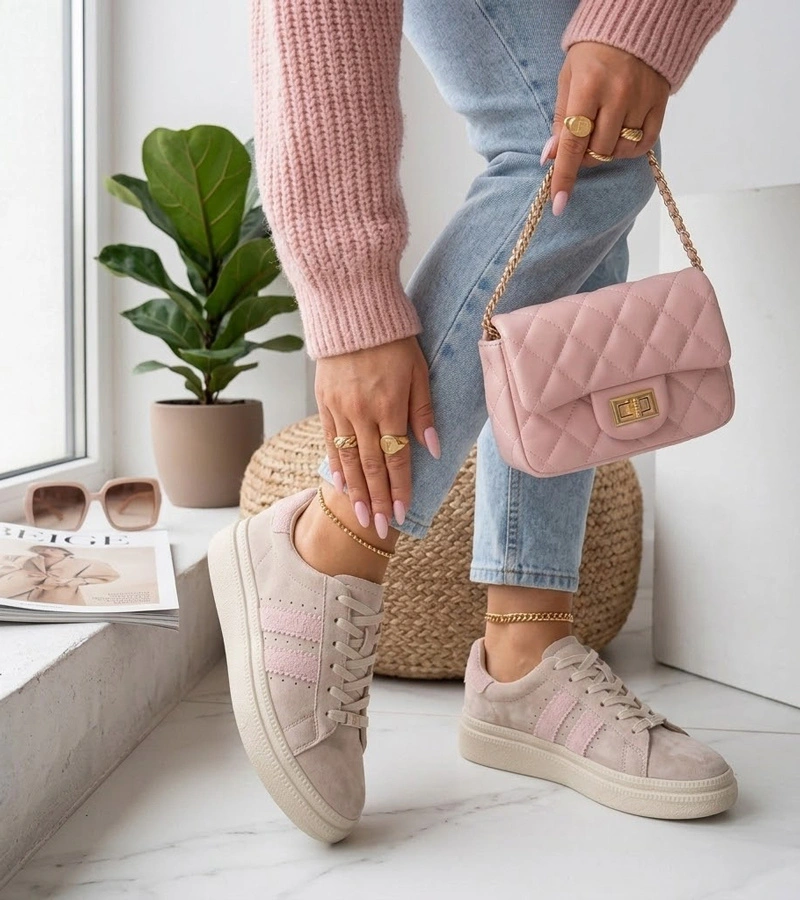 Beżowe Skórzane Sneakersy Na Platformie Filippo