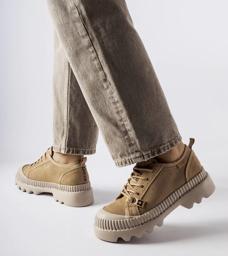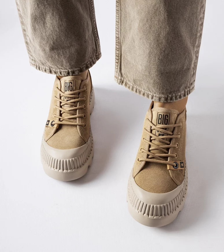 Sznurowane z przodu, można je dopasować do indywidualnych preferencji. Beżowy kolor nadaje im uniwersalności, dzięki czemu łatwo można je zestawić z różnymi stylizacjami. Te trampki są wyjątkowe i dodadzą charakteru każdej damskiej garderobie.