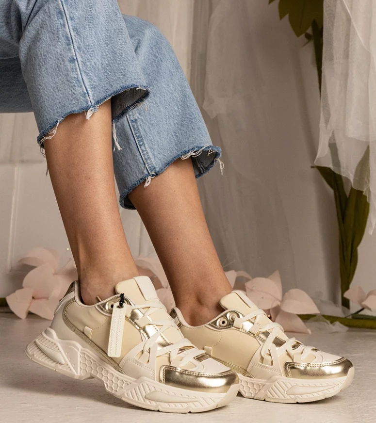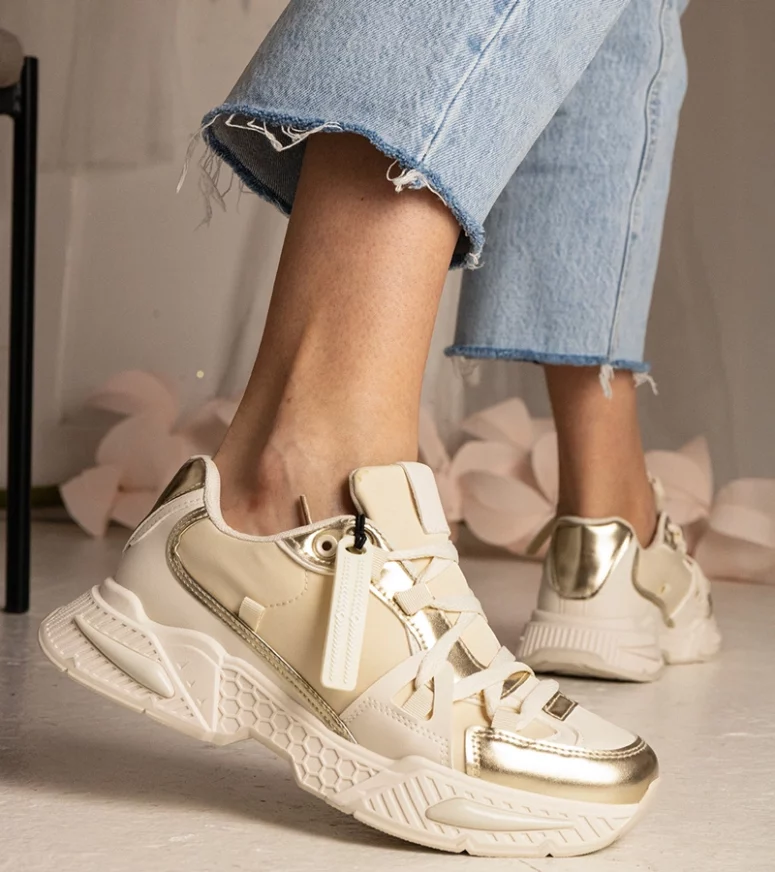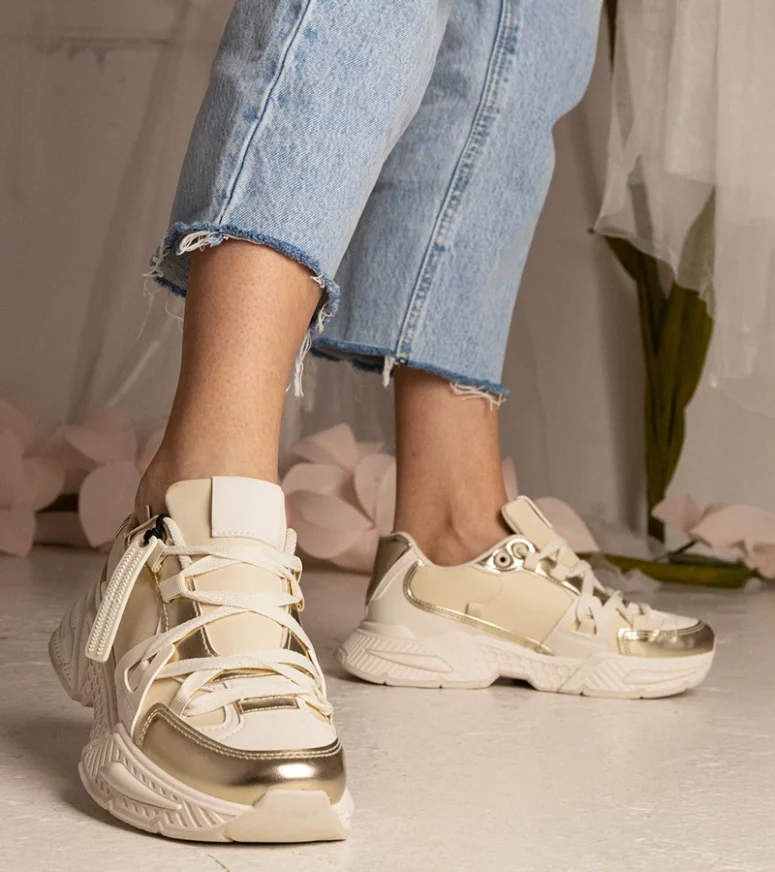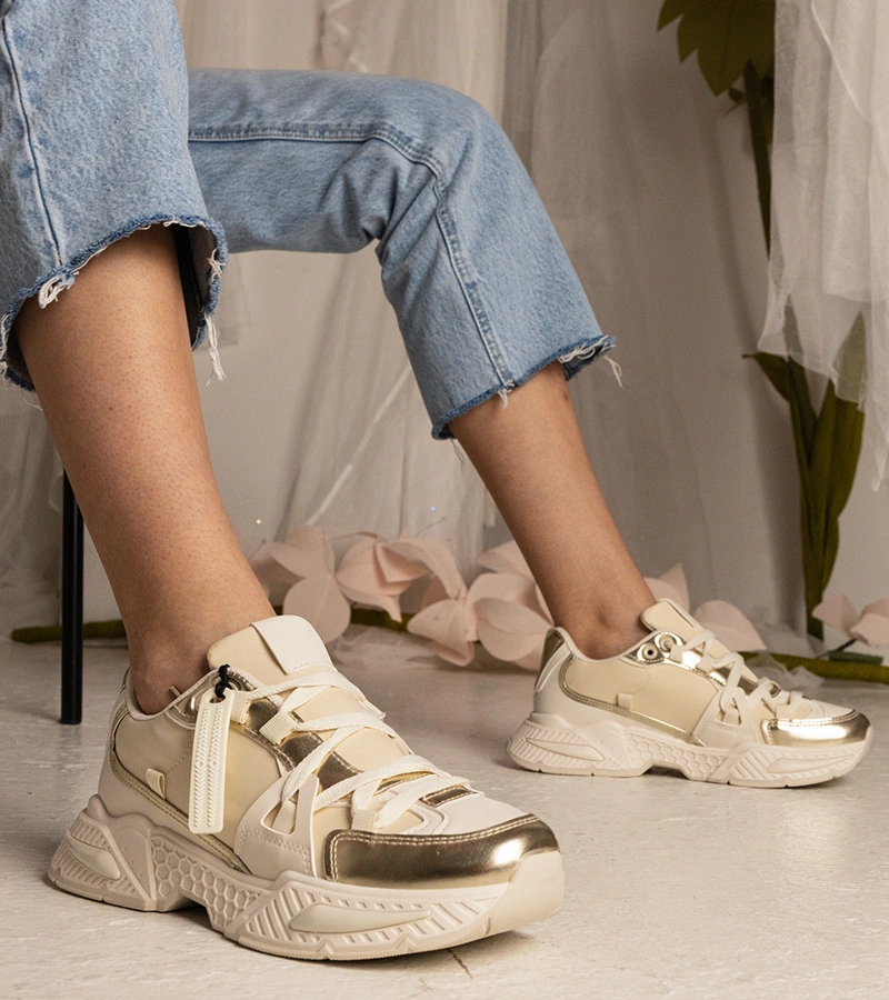 Beżowe sneakersy damskie na masywnej podeszwie Balika – Gemre