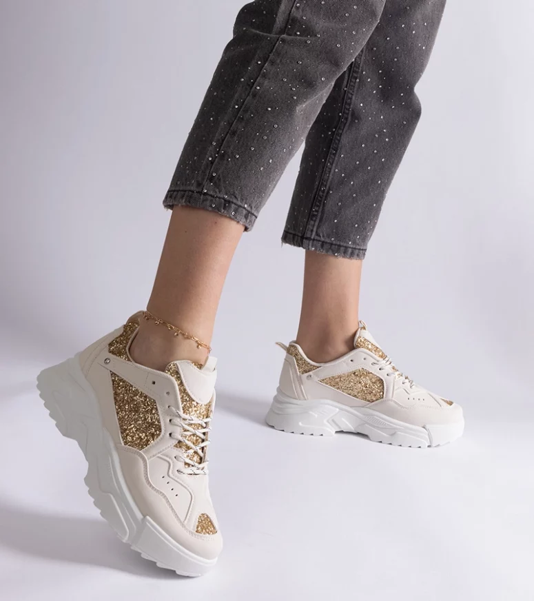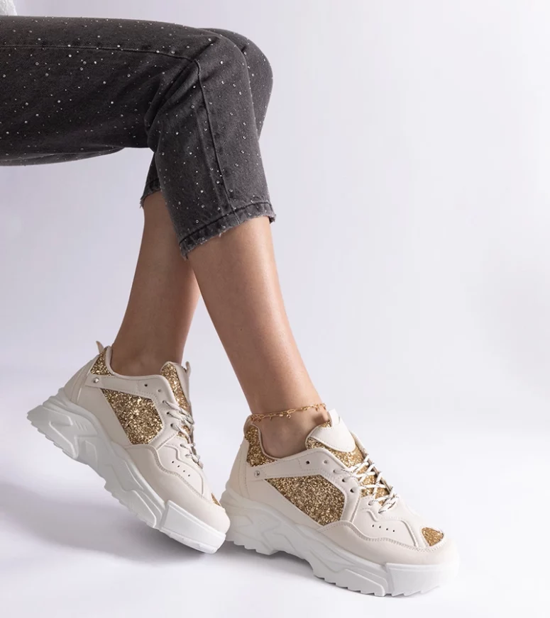 Odkryj nowy wymiar stylu z beżowymi sneakersami damskimi z brokatowymi wstawkami Caraballo od marki Gemre. Te niezwykle modne i komfortowe buty to idealne połączenie elegancji i nowoczesnego designu, które z pewnością przyciągnie uwagę każdej kobiety. Wykonane z wysokiej jakości materiałów, zapewniają nie tylko atrakcyjny wygląd, ale także trwałość i wygodę noszenia na co dzień.