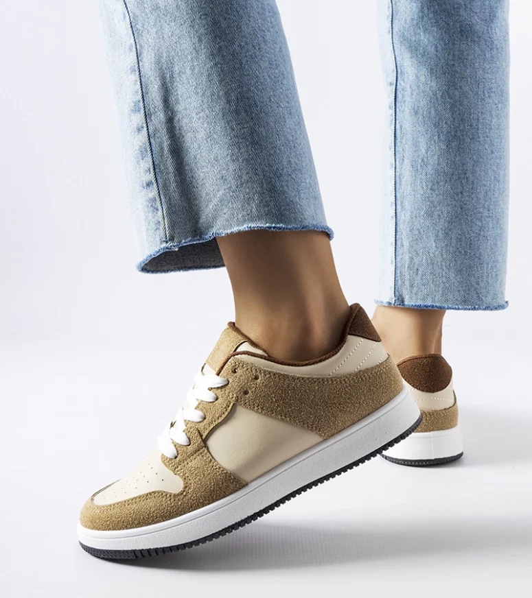 Sneakersy posiadają okrągły nosek, który dodaje im delikatności i uroku. To idealna propozycja dla osób preferujących subtelne detale. Wykonane z wysokiej jakości gumy, te damskie sneakersy są nie tylko trwałe, ale także wygodne w noszeniu. Materiał ten doskonale sprawdza się w ciepłe dni, zapewniając odpowiednią wentylację stóp. Niski model sneakersów jest bardzo praktyczny i sprawdzi się zarówno w codziennych stylizacjach, jak i na bardziej formalne okazje. Dzięki temu, że są sznurowane, można łatwo dopasować je do indywidualnego rozmiaru i preferencji. Te beżowe sneakersy Jacqueline to absolutny must-have na gorące dni. Są modne, wygodne i pasują do wielu różnych stylizacji. Niezależnie od tego, czy wybierasz się na spacer po plaży, czy na spotkanie ze znajomymi, te sneakersy będą doskonałym uzupełnieniem Twojej letniej garderoby.